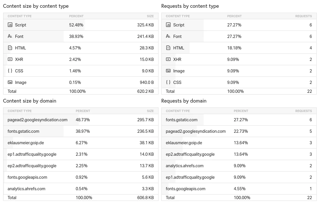 - Page size more than doubles with ads